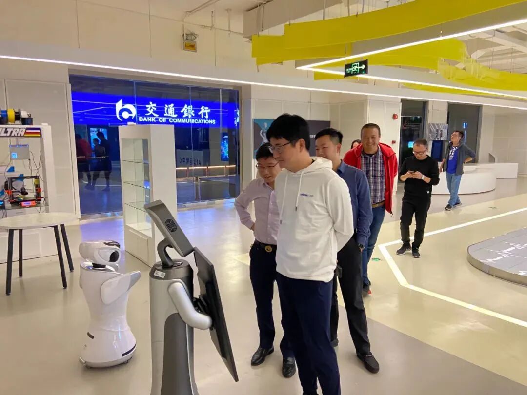 参观了海派智谷一楼的安川、ABB智能制造装备的展示中心,接着体验了海尔智慧家居应用场景以及智慧医疗、智慧政务、智慧餐厅等20个人工智能应用场景。与派宝安防机器人、上海狮尾智能化科技有限公司、思岚科技、日本软银机器人、MAKERULTRA 3D打印、工博士、天策智能商用扫地机器人、上海傲鲨外骨骼机器人、北京精琢机器人等多家展示中心的智能产品进行了互动体验之后,一行人来到了工博士展示区,猎户星空董事长傅盛先生与他的“孩子”进行互动。
