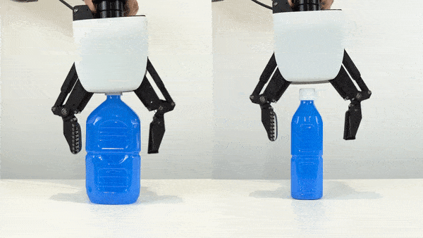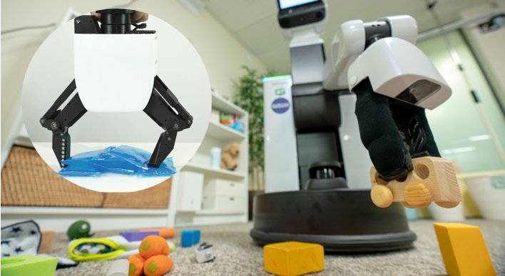 机械手可以抓取家中常见的装满液体的柔软的袋子(洗衣液)。
