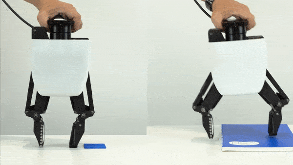 机械手可以夹起一片贴在桌子表面的硅胶(对于人手来说都有一点难度)。