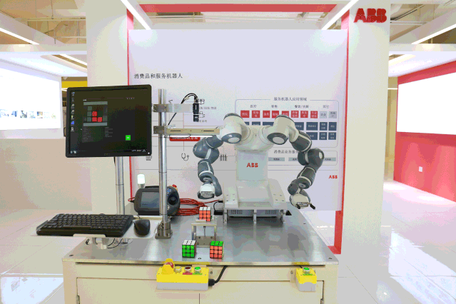 作为工业机器人的先行者ABB,为本次展会带来了一系列先进的“双臂成员” ,在现场YuMi机器人如何解魔方、品尝YUMI咖啡机器人为你贴心制作咖啡,以及指尖陀螺组装、抓小球场景的视觉体验。