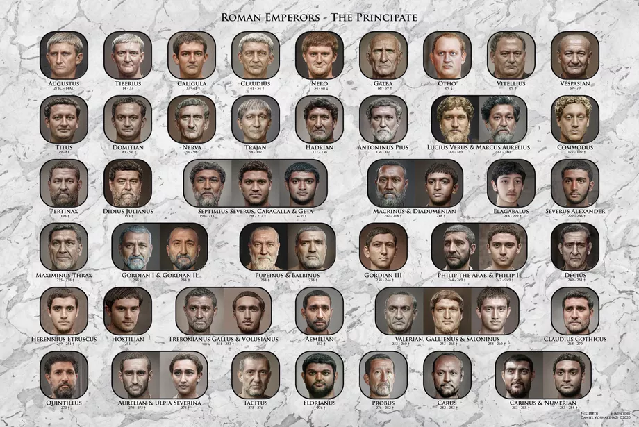 近日,设计师 Daniel Voshart 利用 Artbreeder,结合手动调整,修复了 800 张罗马皇帝半身像的照片,在社交网络上引起热议。
