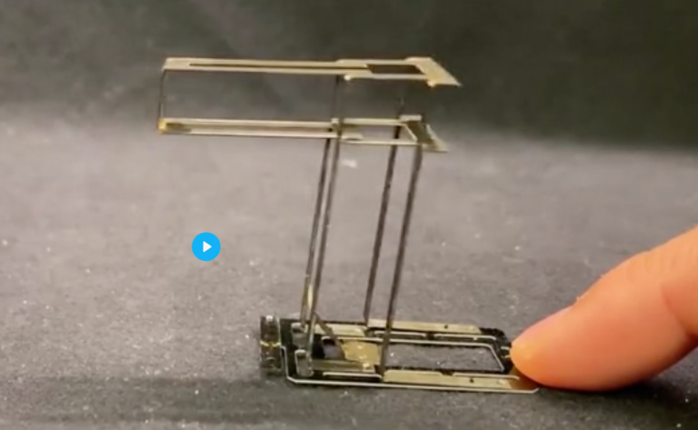 本文章来源|机器人在线 机器人辅助可以为外科医生提供更高的精度且提升对微创手术的控制。但是由于系统本身通常很大,占据了很大的空间,可能比操作它们的患者解剖结构更大。Wyss生物启发工程研究所今天宣布,它已经与哈佛大学和索尼公司合作制造了mini-RCM,这是一种外科手术机器人,它的大小只有网球,重仅相当于一分钱。 Wyss Institute的副教授Robert Wood博士和Sony的机器人工程师Horoyuki Suzuki受到折纸的启发,他们创建了“微型远程运动中心操纵器”或微型RCM。伍德和铃木于2018年开始合作。 制造迷你RCM根据Wyss Institute的说法,要手工大量生产折叠式机械手所需的微小,复杂的结构。伍德和铃木使用了伍德实验室开发的弹出式MEMS方法。它应用了从印刷电路板(PCB)制造到微机电系统(MEMS)的技术。将材料沉积在粘合的层中,然后弹出三维形状的图案进行激光切割。 Wyss Institute的副教授Robert Wood博士和Sony的机器人工程师Horoyuki Suzuki受到折纸的启发,他们创建了“微型远程运动中心操纵器”或微型RCM。伍德和铃木于2018年开始合作。 研究人员为机器人的基座创建了平行四边形,然后由三个微型线性致动器(mini-LA)对其进行控制。微型LA围绕压电陶瓷材料构建,压电陶瓷材料在施加电场时会变形。Wyss Institute表示,这种形状变化将mini-LA的“行进器单元”像火车一样沿其轨道推向其“轨道单元”,并且线性运动使机器人运动。 Wyss Institute的副教授Robert Wood博士和Sony的机器人工程师Horoyuki Suzuki受到折纸的启发,他们创建了“微型远程运动中心操纵器”或微型RCM。伍德和铃木于2018年开始合作。 Suzuki博士说:“我们使用氧化铝和复合预浸料或碳纤维沉积物以及PZT(锆钛酸铅)。” “导轨单元,包括用于位移感应的狭缝图案,是由一块0.38毫米厚的氧化铝板制成的。” 他告诉《机器人报告》:“使用氧化铝是因为我们需要在激光加工过程中保持表面平坦。” “由于其高刚度和低质量,预浸料用于mini-LA。” 一个mini-LA平行于形状的底部以升高和降低形状,而另一个mini-LA垂直于平行四边形以使其旋转。尖端的第三个致动器使工具伸出和缩回。伍德和铃木声称,这种机器人比迄今为止学者们开发的其他显微外科手术设备更小,更轻。 由于压电材料会固有地变形,因此该团队还将基于LED的光学传感器集成到mini-LA中,以检测和纠正与所需运动的任何偏差,例如由手震引起的偏差。 Wyss Institute的副教授Robert Wood博士和Sony的机器人工程师Horoyuki Suzuki受到折纸的启发,他们创建了“微型远程运动中心操纵器”或微型RCM。伍德和铃木于2018年开始合作。 该机器人是使用弹出式MEMS方法设计的,该方法可将材料沉积在板材中并激光切割,以使它们弹出为所需的形状。 用Phantom Omni测试稳定性 为了模拟遥控手术的情况,研究人员使用了Phantom Omni设备,该设备在响应用户手动控制笔状工具的情况下操纵mini-RCM。第一次测试评估了人类通过显微镜观察并用手工或使用微型RCM追踪比圆珠笔尖端小的正方形的能力。 Suzuki表示:“ Phantom Omni设备-一种市售的界面工具-不会提高人类的准确性。” 几何比例缩放可以弥补由于手部震颤减少造成的人为误差。手部震颤的量约为156μm[微米]。” 与手动操作相比,mini-RCM测试将错误减少了68%。该团队说,这在外科手术过程中处理小结构和脆弱组织时尤其重要。 然后,研究人员创建了一个模拟程序,称为视网膜静脉插管手术,在该模拟手术中,外科医生必须小心地将针头穿过眼睛,将治疗剂注入眼球后部的细小静脉中。他们制造了一个与视网膜静脉大小相同的硅胶管,大约是人发厚度的两倍,并成功地用连接在mini-RCM末端的针刺破了硅胶,而不会造成局部损伤或破坏。 铃木说,26.4μm的位置精度类似于视网膜手术机器人的基准。 迷你RCM使手术更便携 威斯研究所说,迷你RCM不仅可以帮助外科医生进行精细的操作,而且其小巧的尺寸使其在出现并发症或停电时也很容易安装和拆卸。 铃木说:“我们相信安装的容易程度通常与紧凑性和重量有关。” “包括[Intuitive Surgical的] da Vinci在内的常规外科手术机器人非常大且笨重,这使得在小型手术室中的安装变得很复杂。” 伍德说:“弹出式MEMS方法在许多需要小型但复杂的机器的领域中被证明是一种有价值的方法,非常高兴地知道它有潜力提高手术的安全性和效率,以使手术变得更加安全。对患者的侵入性更小。”他还是哈佛大学约翰·保尔森工程与应用科学学院(SEAS)的查尔斯河工程与应用科学教授。 研究人员在《自然机器智能》上发表了他们的研究结果。 未来的合作 研究人员感到遗憾的是,他们计划增加机器人执行器的力,以覆盖操作过程中遇到的最大力,并提高其定位精度。他们还在研究在加工过程中使用具有较短脉冲的激光,以提高mini-LA的感测分辨率。 铃木说,可能需要三到五年的时间才能实现部队和位置的改善。他说:“我们认为,需要优化的计算仿真来提高性能,这将需要一到两年的时间。” “随后,必须进行制造,这需要一到两年的时间。这个估计相当粗糙。” Suzuki指出,此外,碳复合材料框架可以使mini-RCM与磁共振成像(MRI)配合使用。流道单元的铁磁部分可以用钛合金代替。mini-RCM机器人也足够小,可以放入MRI系统的狭窄空间内。 “伍德实验室和索尼之间的这种独特合作说明了将现实世界中的行业重点与学术创