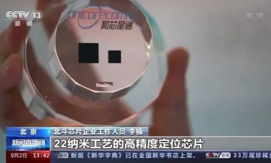 北斗芯片企业工作人员表示:这颗芯片是我们即将发布的最新一代22纳米工艺的高精度定位芯片,跟上一代芯片相比,它的尺寸面积只是上一代的四分之一,但功耗是上一代的五分之一。