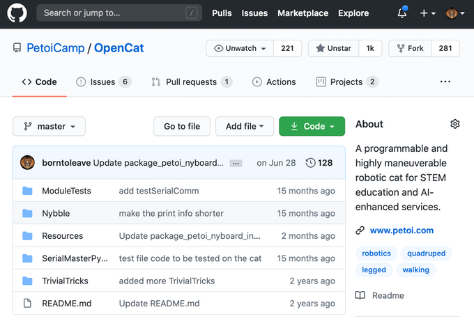 当大多数人都在模仿波士顿动力价格高昂的四足机器人时,OpenCat是全球第一个用消费级舵机实现四足步态并量产的机器人平台。目前,Bittle项目已在Kickstarter 募资平台上启动了新一轮的众筹,完整套件刚发布时的价格为195美元,在一夜之间被抢光。