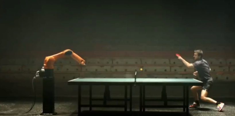 事实上,AI机器人由来已久,2014年,德国乒乓球名将波尔迎战一台名为库卡的乒乓球机器人,虽然这只是一段广告营销片,但也在很多人心中留下了深刻印象。