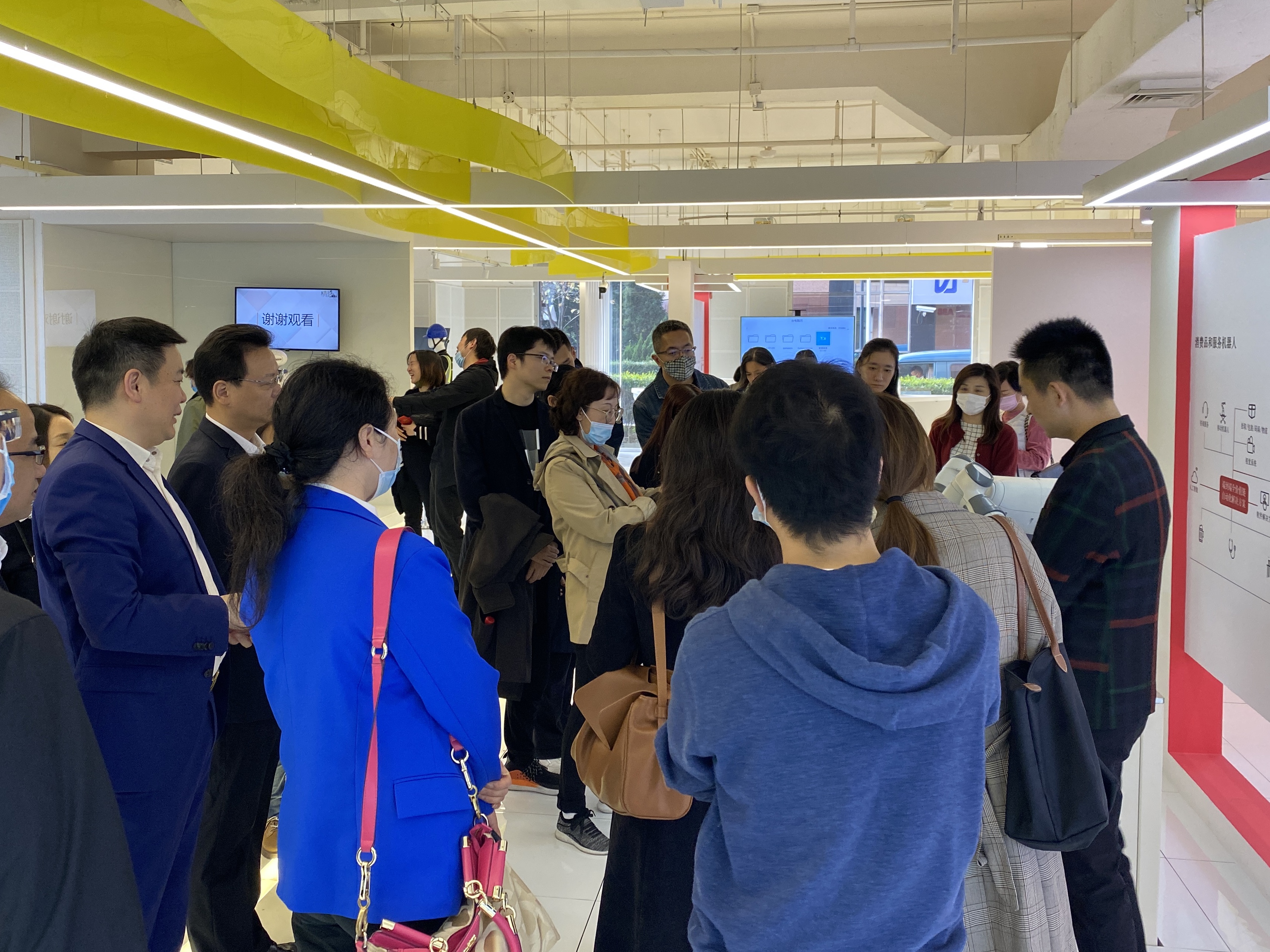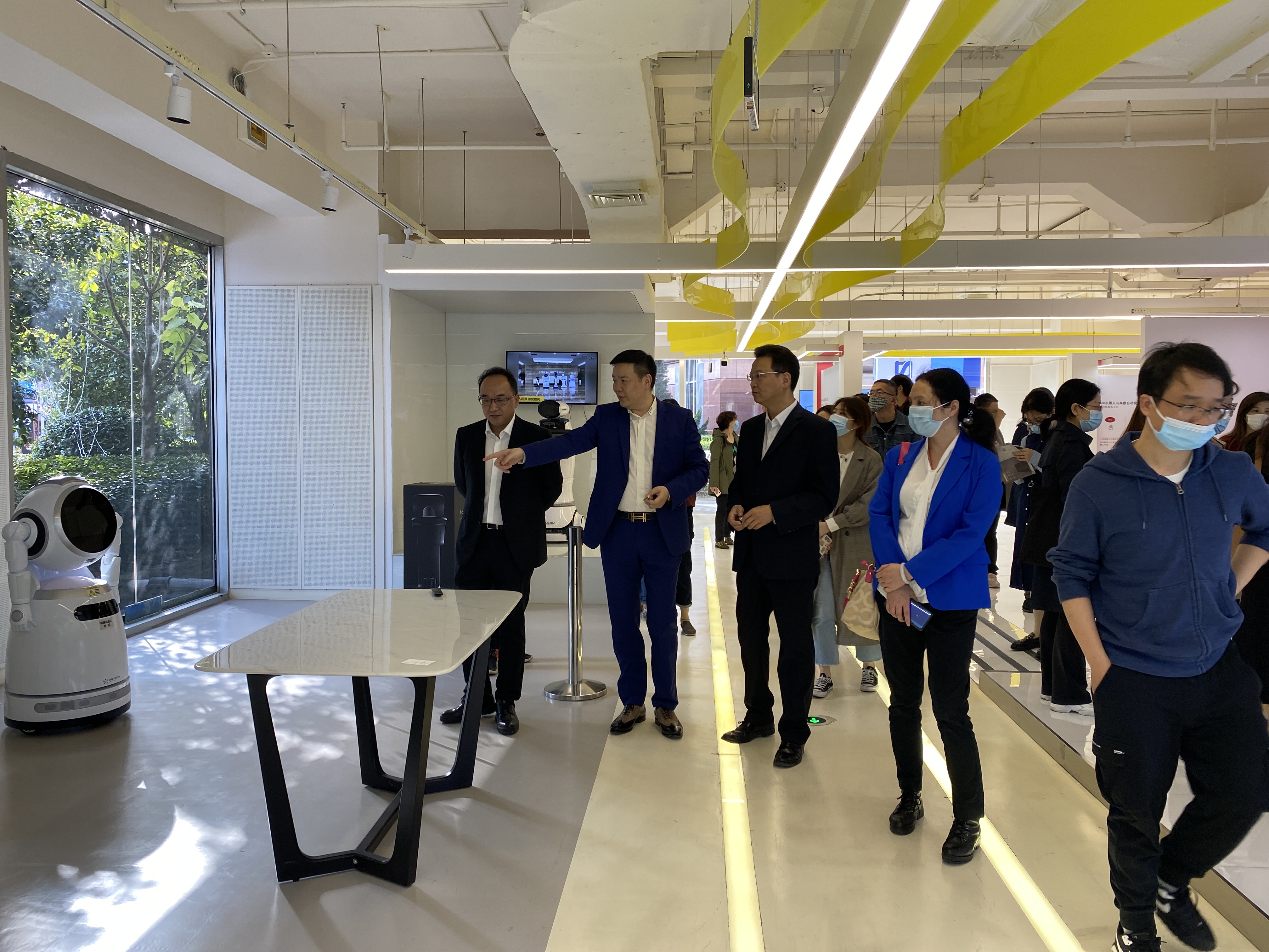 2020年11月13日下午十三时,上海市黄浦区委统战部副部长、区社会主义学院党组书记袁伟东一行三十余人,在上海海派智谷科技有限公司负责人臧君启的陪同下参观考察上海海派智谷科技有限公司一层人工智能体验大厅。